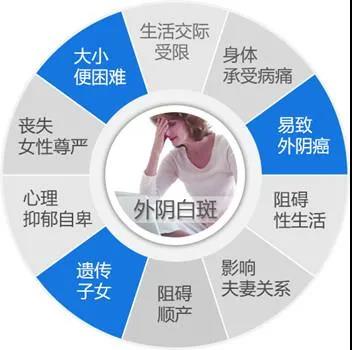 萎缩型外阴白斑容易引起外阴弹性下降,尿道口萎缩,阴唇消失,严重者出现排尿性生活困难,出现阴唇萎缩消失则表明外阴白斑病情在扩散恶化。